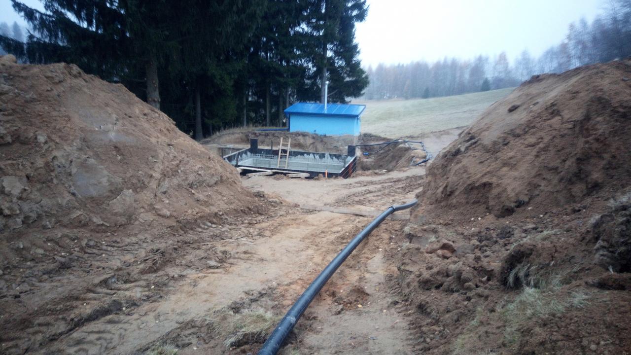 Výstavba rezervoáru , přívodu , odkalovačky